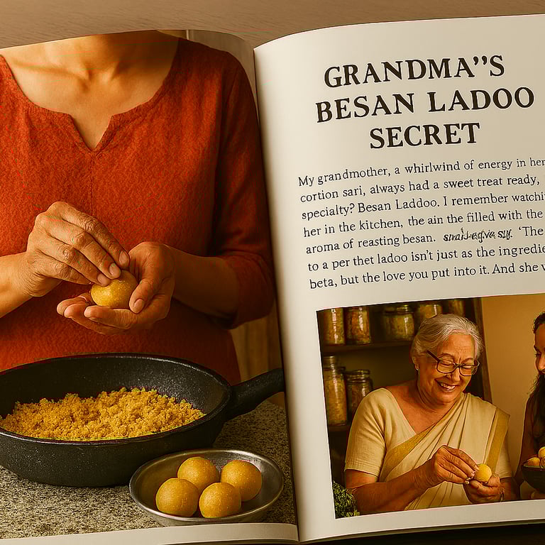 "We all are ladoos, made with love, sweetness and a bit of our own elements. Within us are pieces that are colourful and dark, jagged and beautiful and each one tells a tale of where we come from. Shaped carefully to be perfectly round but uniquely different in our own ways."